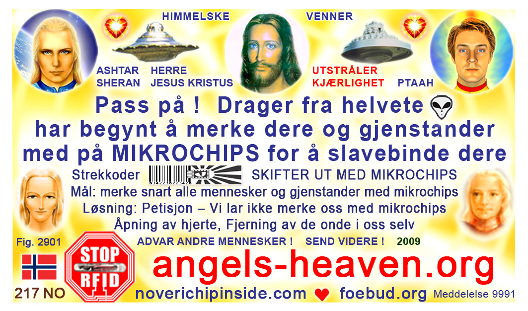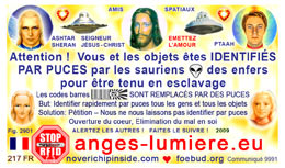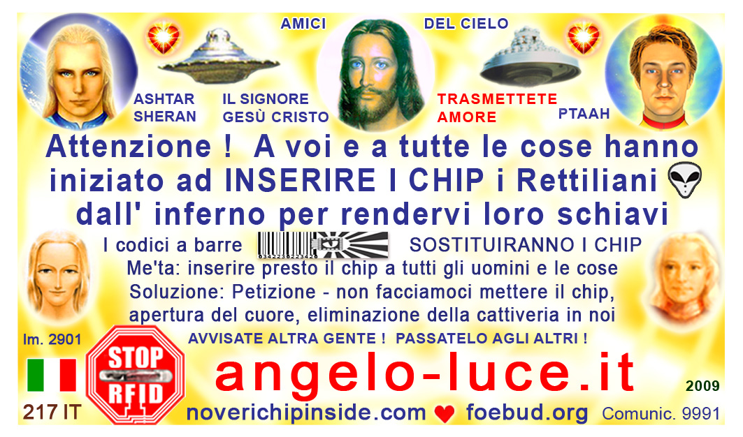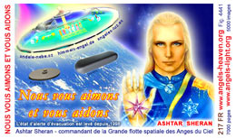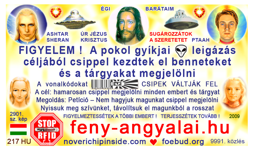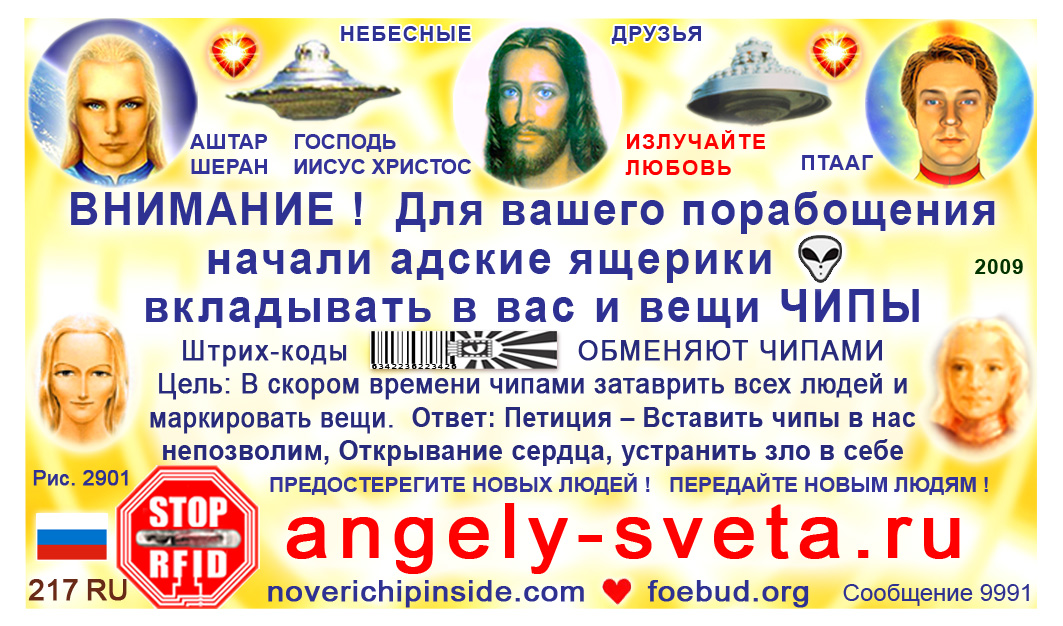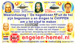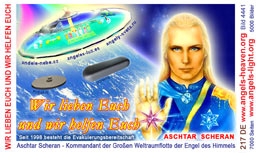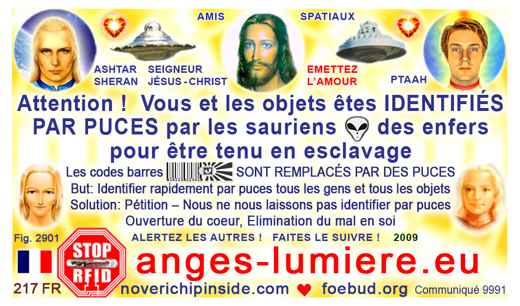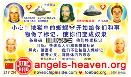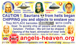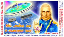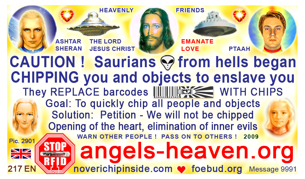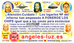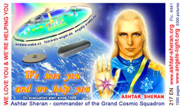 The most important card today containing vital information consists of pic. 4441 (Ashtar Sheran with a space ship and his vital message) on one side and pic. 2901 (anti-chip warning with a barcode) on the other side. See below where you'll find this card translated to various languages.