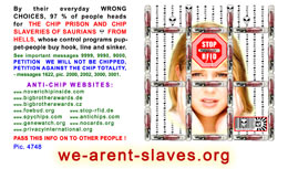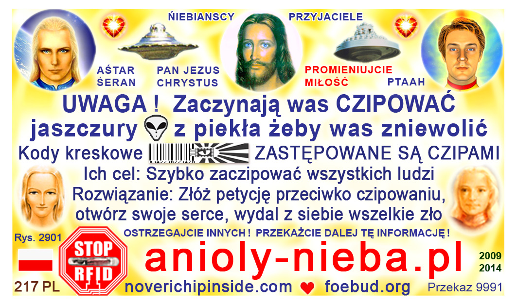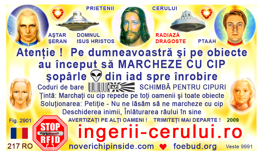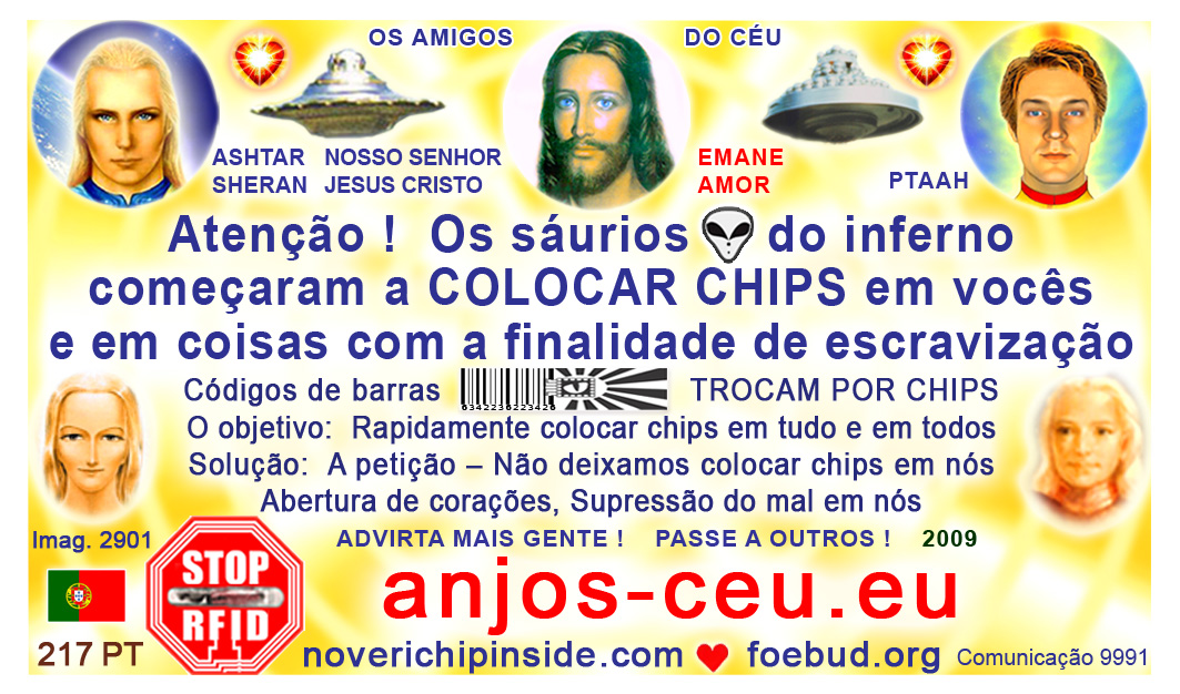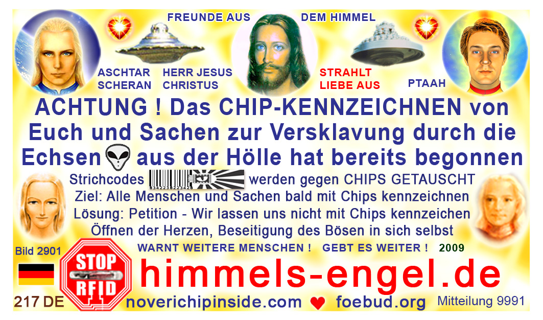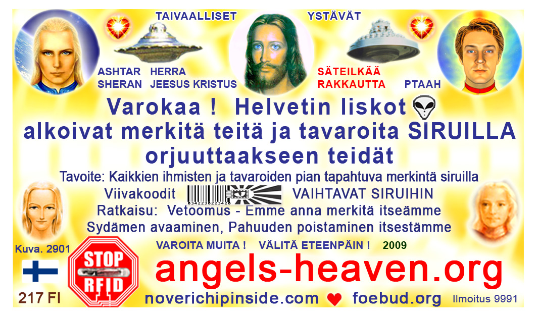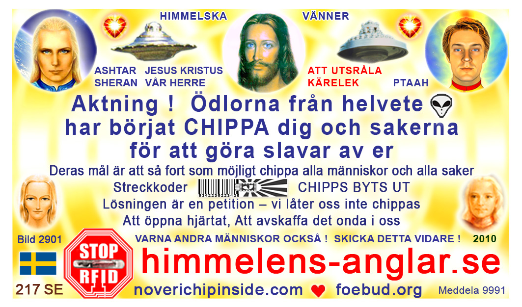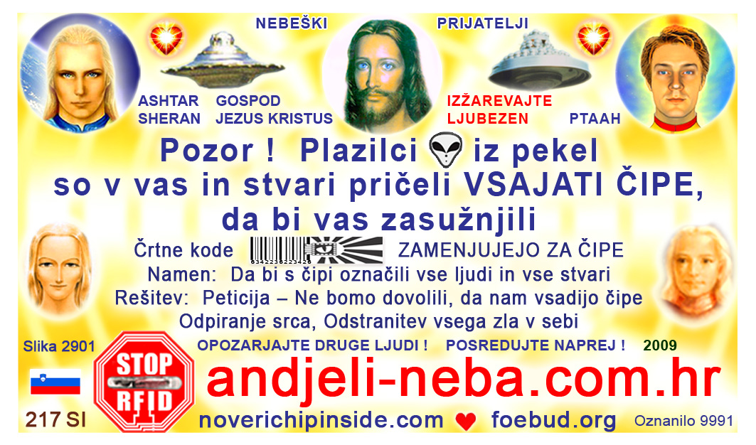 The most important card today containing vital information consists of pic. 4441 (Ashtar Sheran with a space ship and his vital message) on one side and pic. 2901 (anti-chip warning with a barcode) on the other side. See below where you'll find this card translated to various languages.
