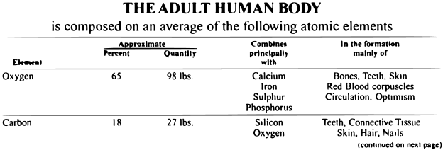 The Enzymes in the body give the spark of activity to every cell and tissue, as well as to their functions, so long as the body is alive. The moment the body dies, the life represented by its Enzymes is dissipated, at which time the atoms and molecules and the cells and tissues composing the anatomy are no longer subject to regeneration and begin to decompose.