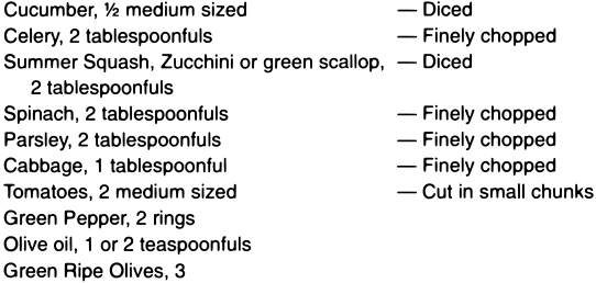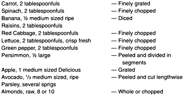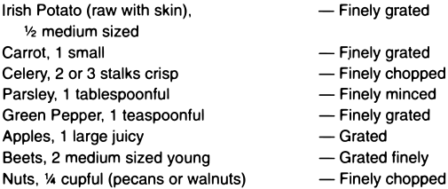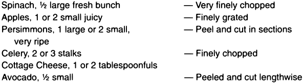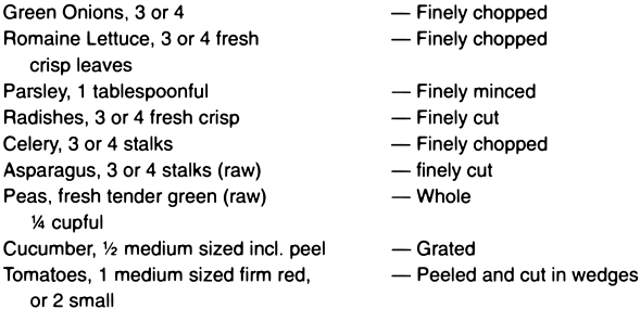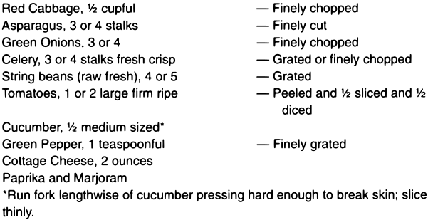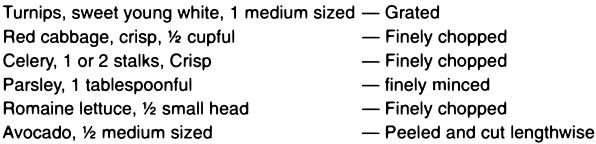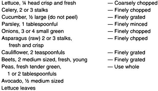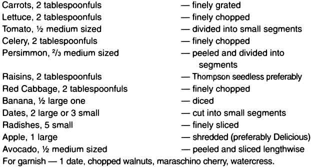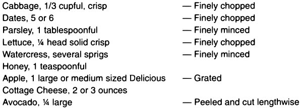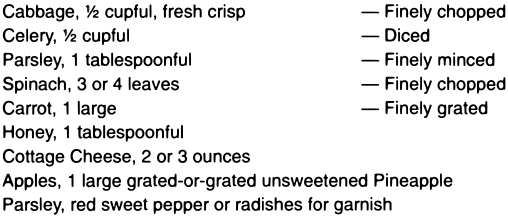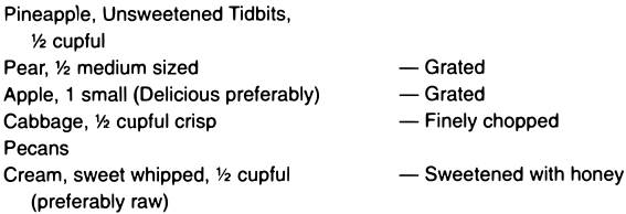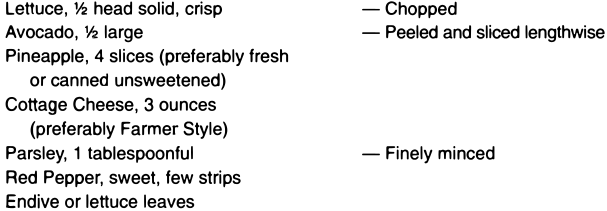 As a top dressing for salads, sliced or crushed pineapple, preferably raw, is a palatable addition, and beneficial, provided that it has not been sweetened with sugar.