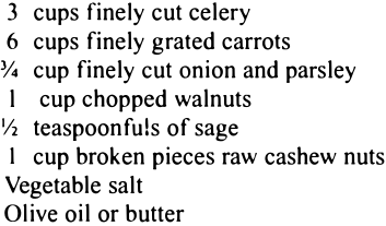 Nuts are among our most valuable supplies of concentrated proteins and fats. By eating one pound, to one and a half pounds of unsalted raw nuts a week, I have found that meat is not necessary as a food, even when doing heavy manual labor, particularly when starches and sugars also are omitted, using in their place an abundance of raw fruits and vegetables, and of course, a sufficient quantity of raw vegetable juices.