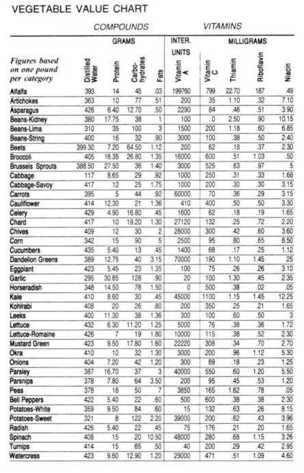 Special: Vegetable Value Chart