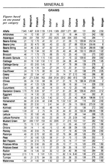 Also, there are today, many varieties of almost every kind of food. For example, here are some of the varieties of carrots available: Imperator, Chantenay, Danvers and Oxheart, each having a slightly different mineral composition from the others, but not enough to take them out of the carrot category. This is also true with other vegetables.
