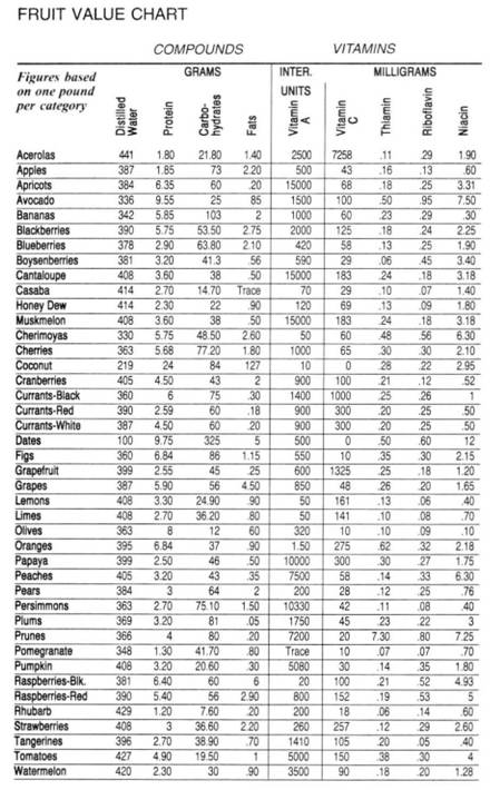 Fruit Value Chart